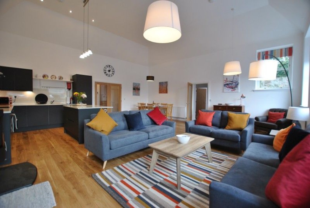Formerly part of the old school, this new holiday home has been fully renovated to an extremely high standard to offer luxury accommodation. Retaining many aspects of the traditional building such as the high ceilings and full height windows, there are tasteful reminders of the buildings’ former life as a school beautifully intertwined into this contemporary and stylish home.