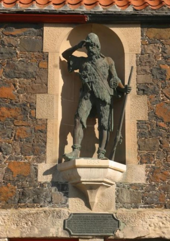 The statue shows Selkirk awaiting rescue in a sculpture by Thomas Stuart Burnett (1885). Alexander Selkirk (1676 – 13 December 1721) was a Scottish privateer and Royal Navy officer who spent more than four years as a castaway (1704–1709) after being marooned by his captain on an uninhabited island in the South Pacific Ocean.