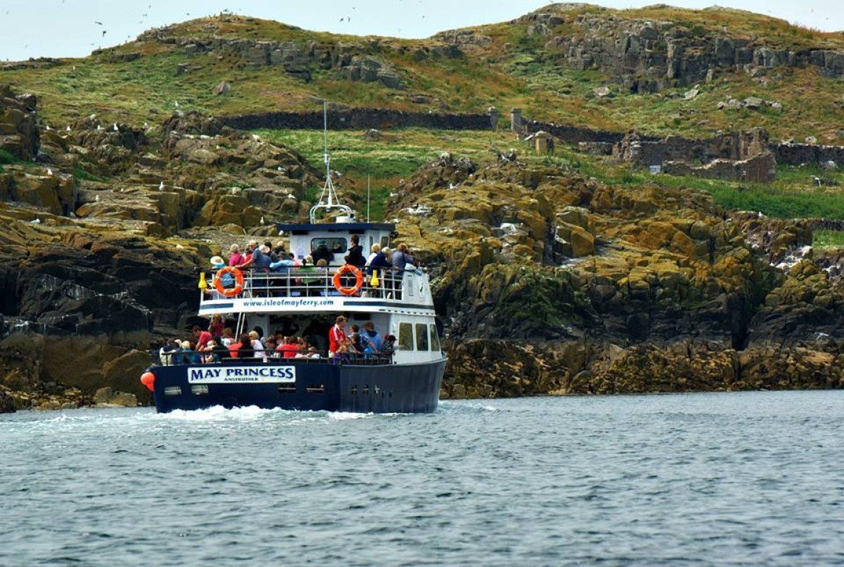 The May Princess sails from Anstruther to the beautiful Isle of May almost every day from 1st April to 30th September. Licensed by the Maritime Coastguard Agency to carry 100 passengers, she has been operating on this run for the last twenty years. The trip on the boat lasts from around 4.5 to 5 hours in total, which includes 2.5 to 3 hours ashore on the Island, and if the weather allows a slow circumference of the Island by the boat to allow visitors to enjoy the spectacular scenery and wonderful wildlife from the sea.
