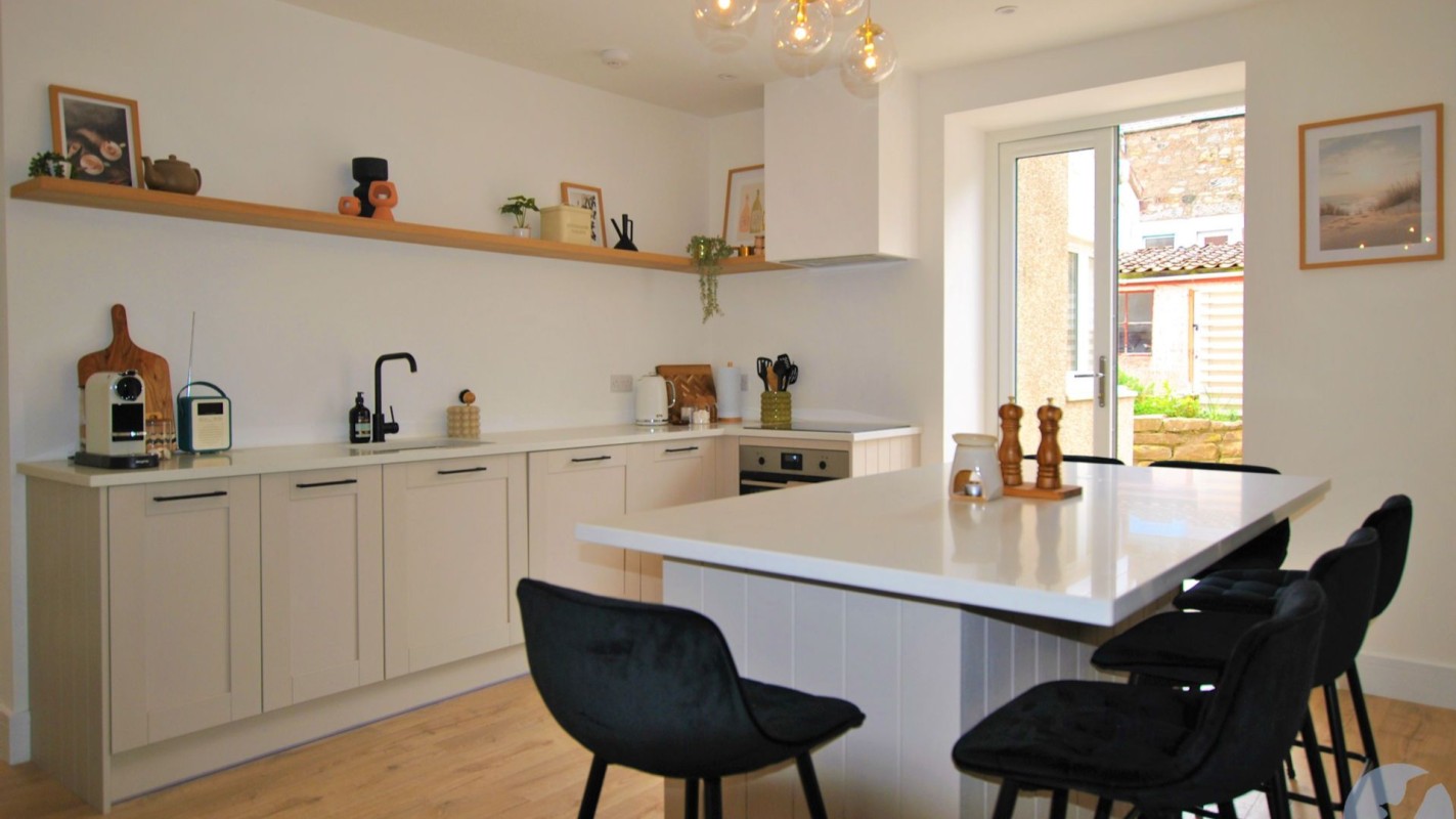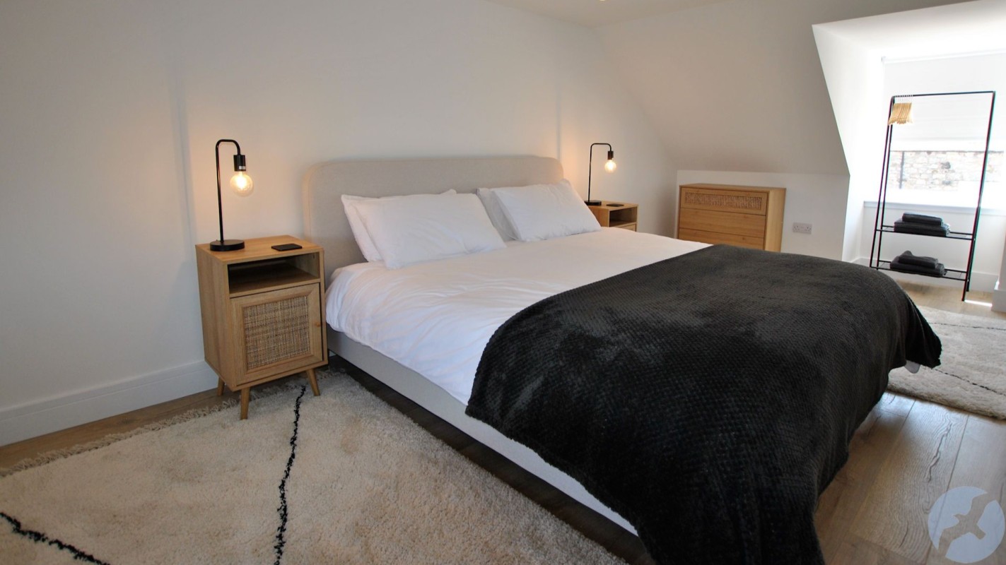 With three bedrooms laid out over three levels, this spacious and bright home offers superb accommodation for six guests. The open plan layout of the ground floor which flows seamlessly onto the outdoor space makes Crow’s Neuk ideal for family groups or friends travelling together. Entering on the ground floor, there is a useful porch for sandy shoes and coats. The spacious lounge has a wood burning stove, a great focal point to gather round in the colder evenings and opens into the dining kitchen. A central island offers space to dine whilst looking out to the garden and the well-equipped kitchen is a great place to try new recipes with some of the fresh local produce.