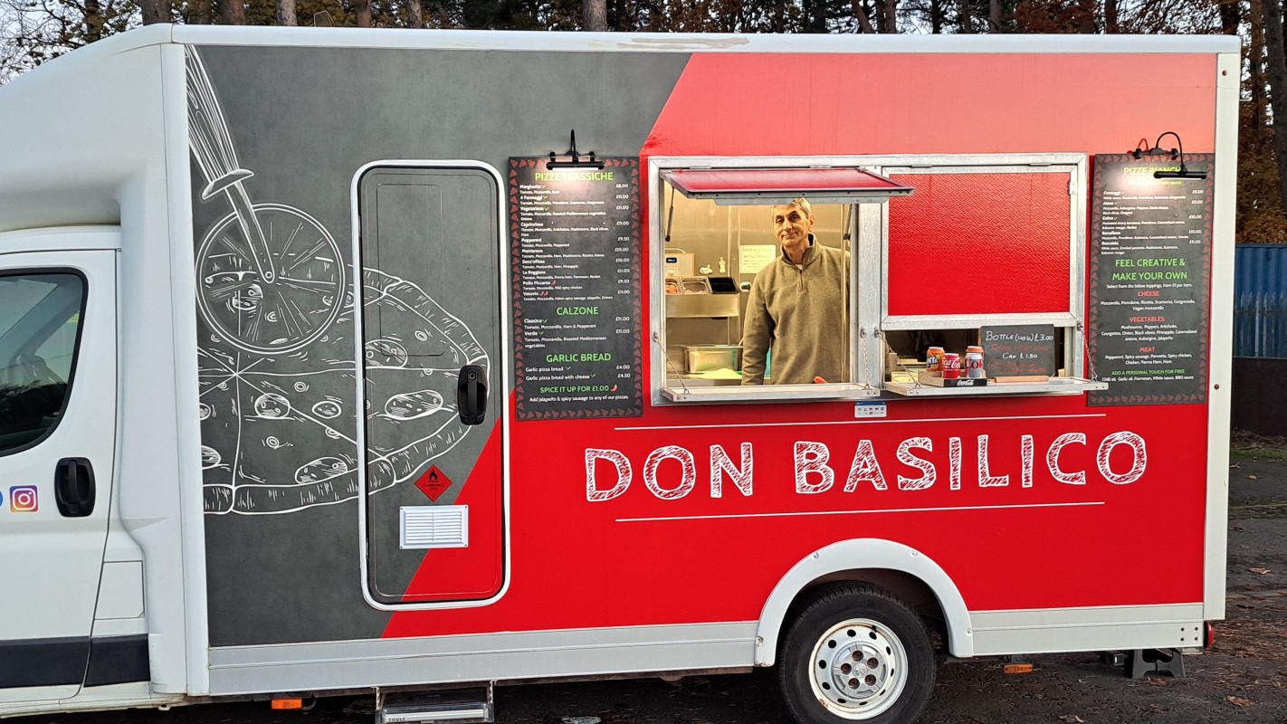 Italian chef Massimo use a traditional Italian method to make his pizza from a van parked in Rosemount Avenue in Kirkcaldy (what3words; increased.dish.goodness)