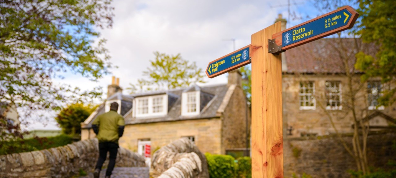 On leaving Kinglassie the route climbs over the hill above the village where the views are lovely, before it follows the River Leven and descends on a pretty countryside trail into the town of Leslie.