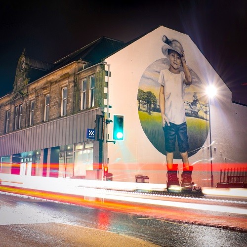 The Happy Lands is a drama that depicts the realities and hardship of Scottish miners in the community of Fife during the General Strike of 1926. The fictional mining village of Carhill in the film is In fact Cardenden in Fife. Just along the road in Cowdenbeath visit this other mining town where you can view the wonderful art murals, including The Miner's Boy.