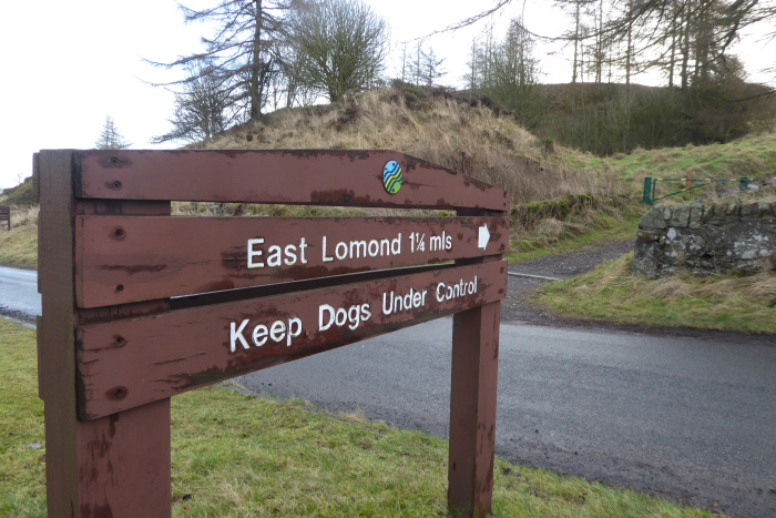 Turn right and walk to the far end of the car park, where you’ll see another green & yellow barrier across a path. Follow this mostly level path as it skirts around the edge of East Lomond. Sheep and cattle are sometimes in the adjacent fields so again, make sure your dog is on a short lead or under close control at all times.