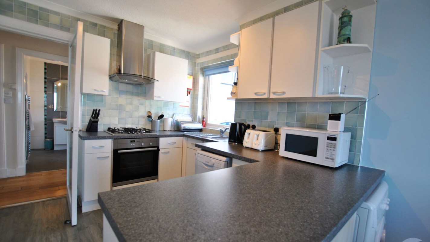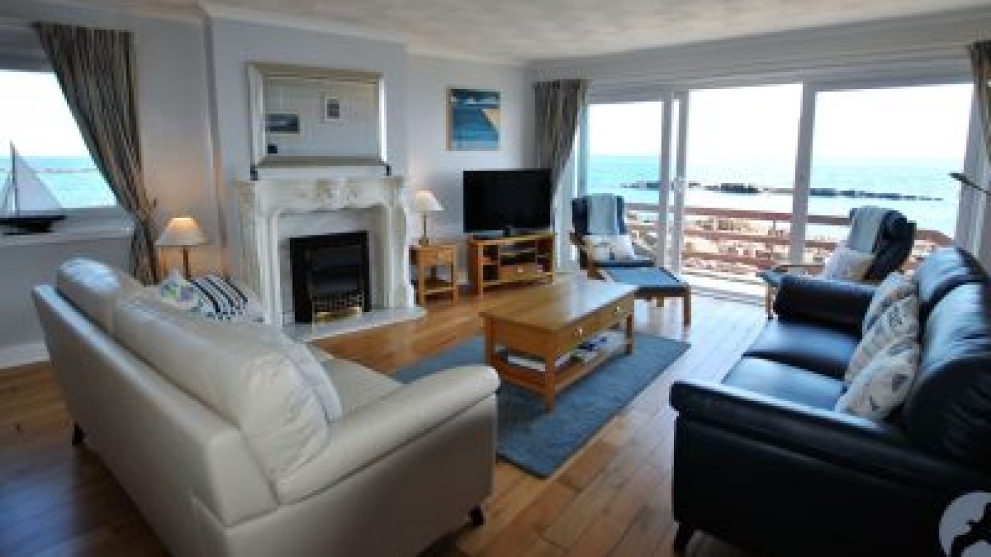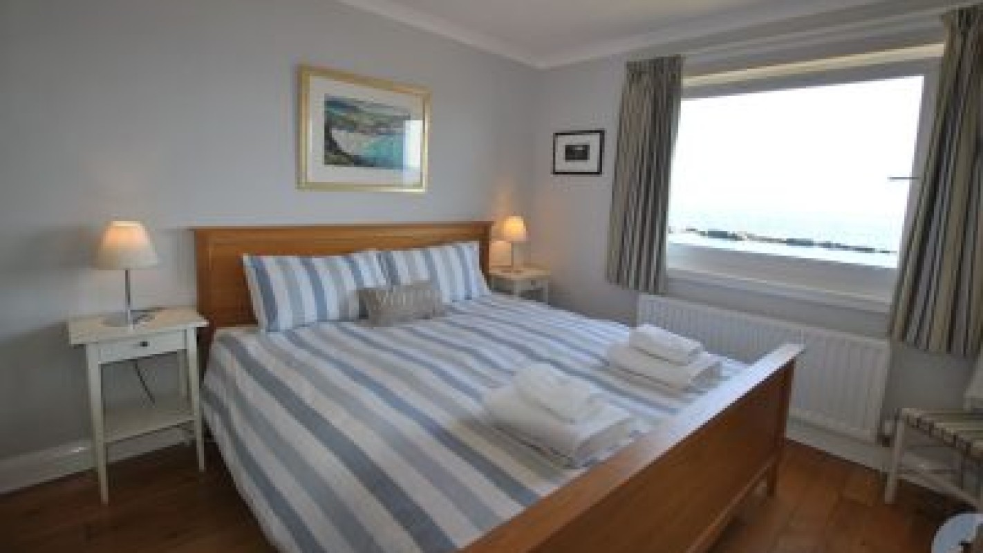 Both the main large king bedroom and the double bedroom enjoy uninterrupted sea views, a real treat to wake up to each day. As well as plenty of storage in each bedroom, the large king bedroom has an en-suite shower room with walk in shower. The twin bedroom is spacious and bright and suited to children or adults alike. A large family bathroom with corner bath and separate walk-in shower completes the accommodation.